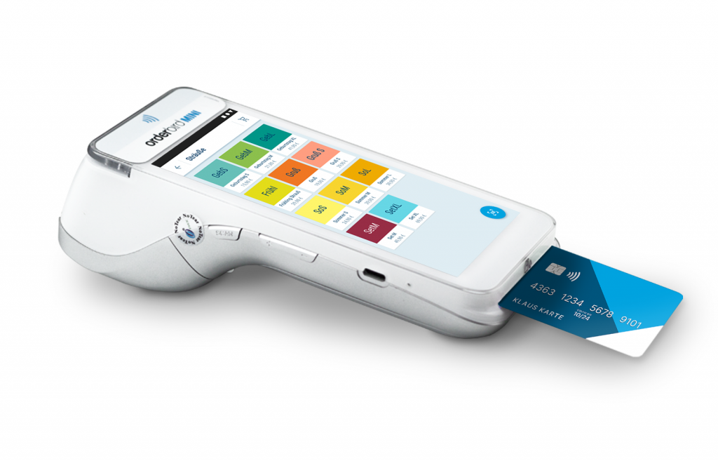 Das orderbird MINI enthält bereits eine integrierte Kartenzahlungsfunktion, die sämtliche Zahlungsoptionen unterstützt, sei es in bar, mit EC-Karten, Kreditkarten oder kontaktlos über NFC – und das ohne zusätzliche Grundgebühren, Mindestumsatz oder Vertragsbindung.